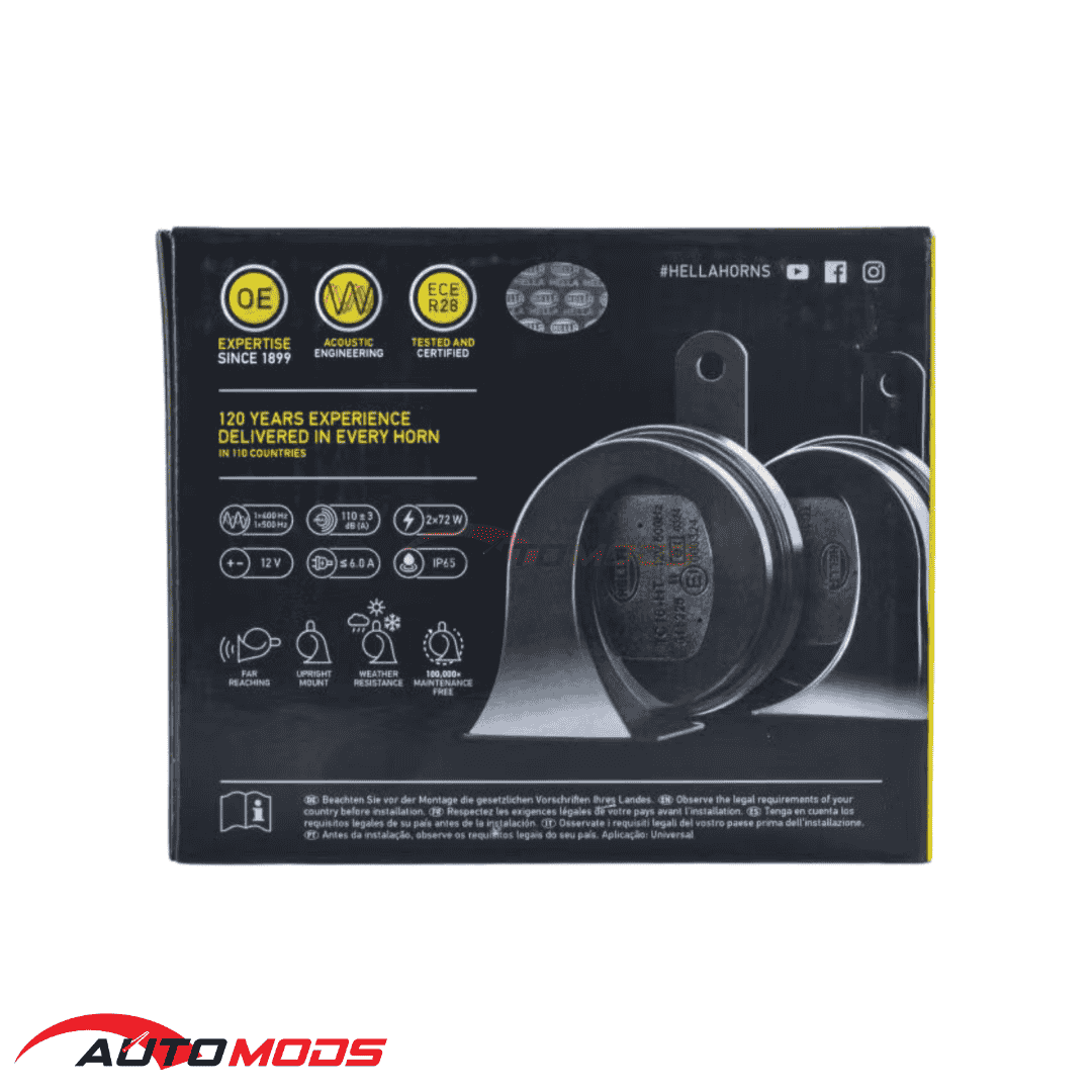 HELLA TRUMPET BLACK TC16S 12V 110DB± 400HZ & 500HZ TONE UNIVERSAL HORN